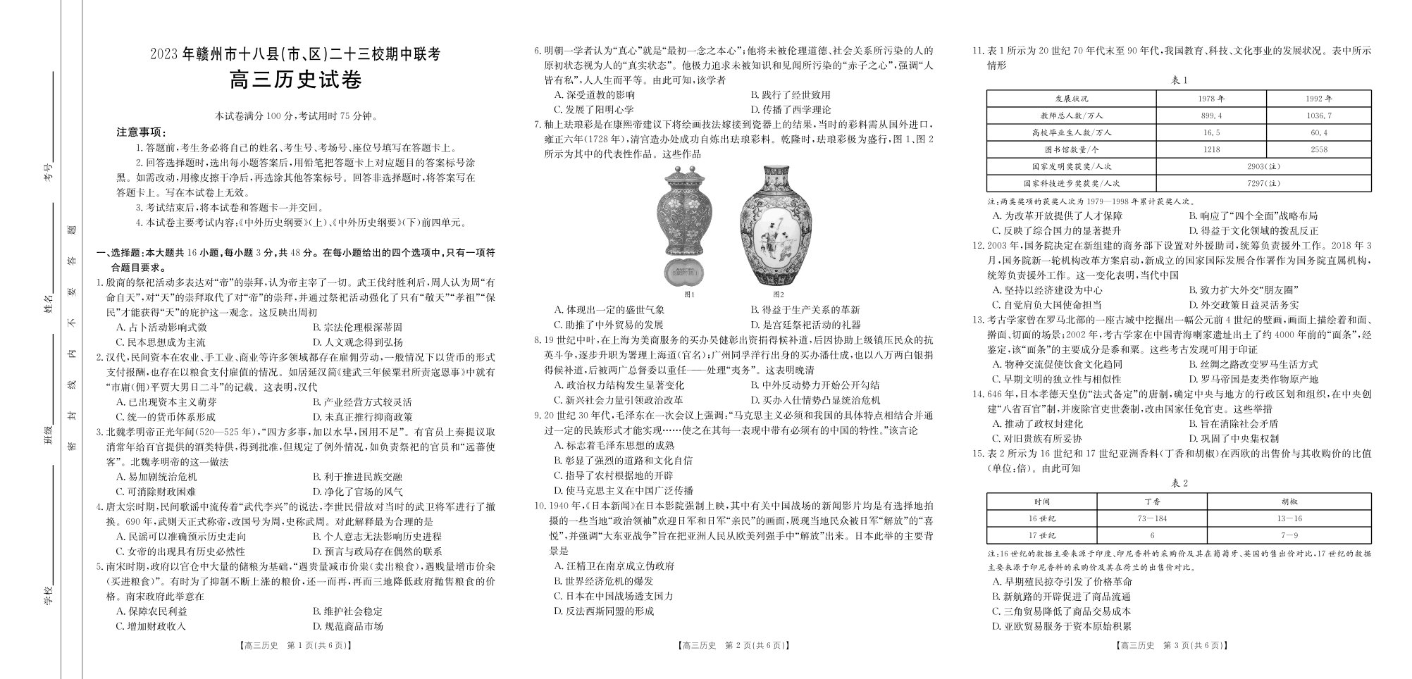 江西省赣州市十八县二十三校2023-2024学年高三上学期期中联考 历史