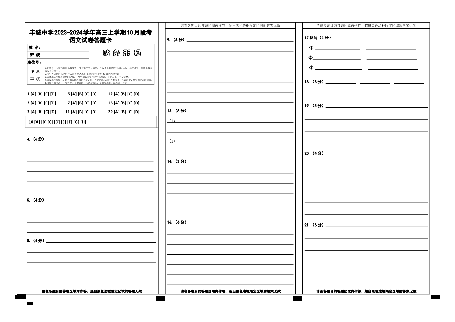高三语文答题卡