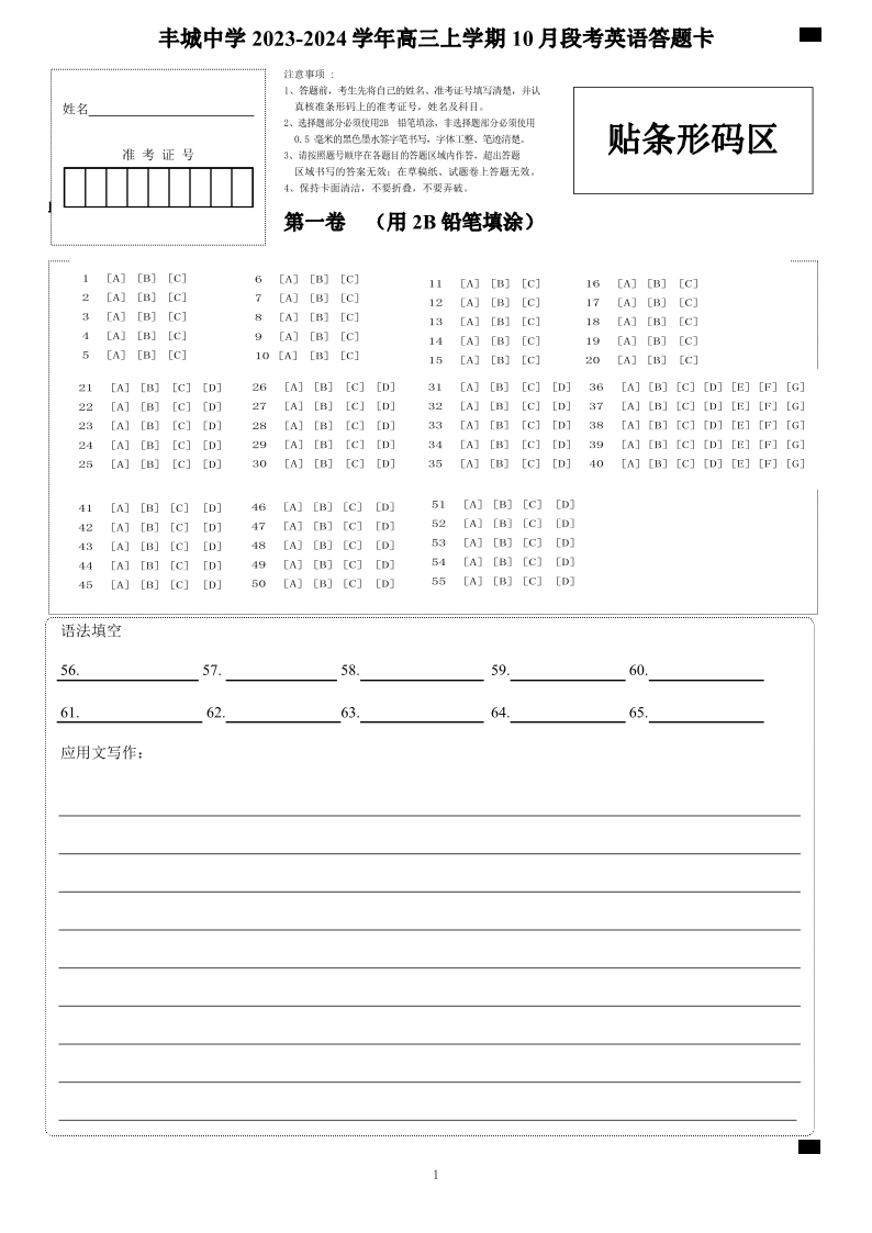 高三英语答题卡
