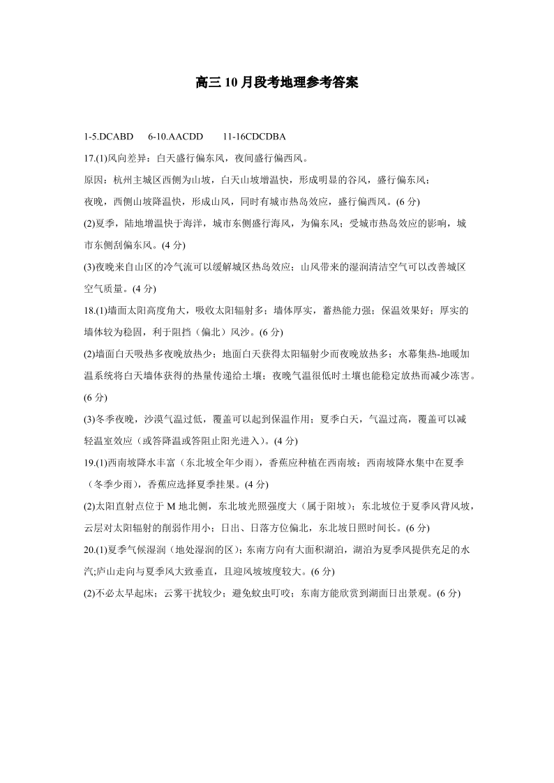 高三地理参考答案