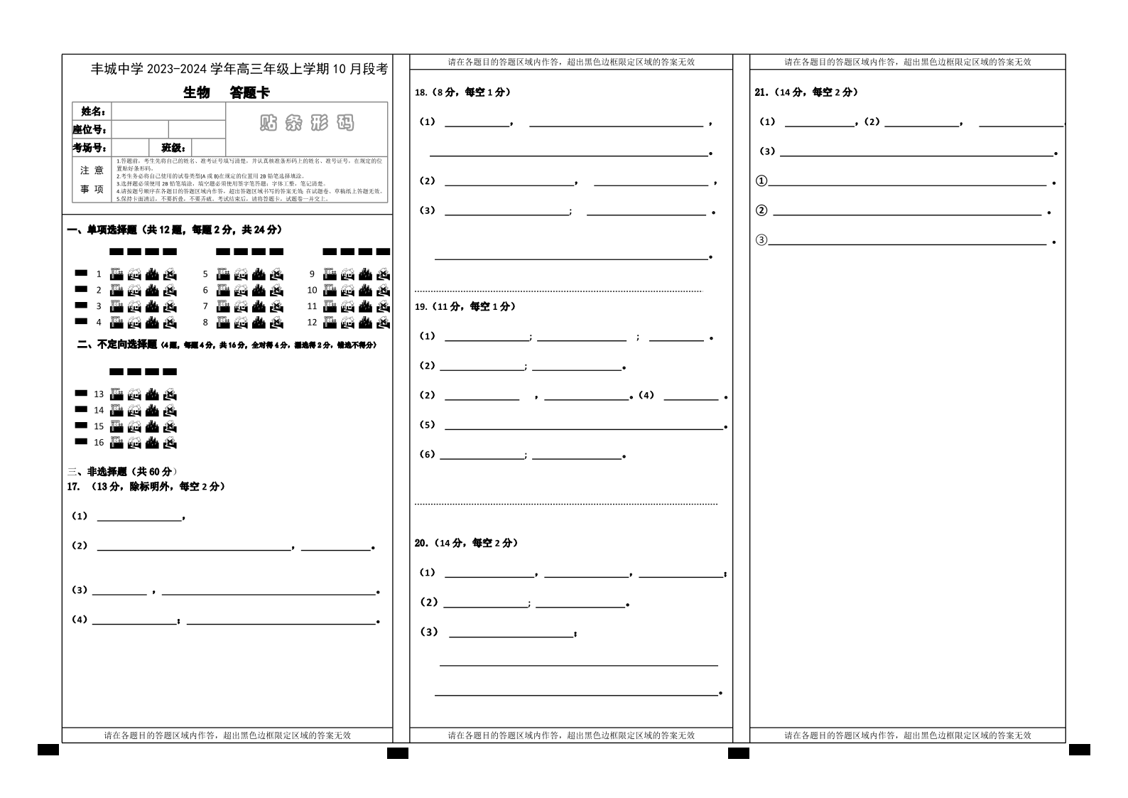 高三生物答题卡
