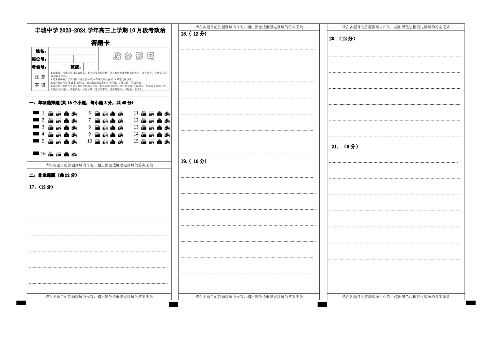 高三政治答题卡