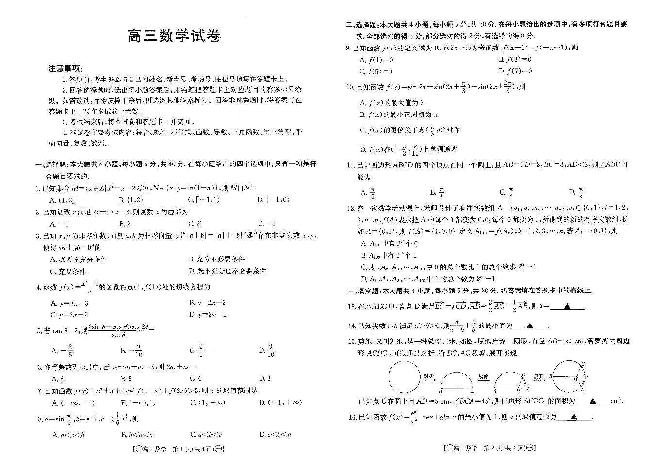 江西省部分高中学校2023-2024学年高三上学期10月联考 数学