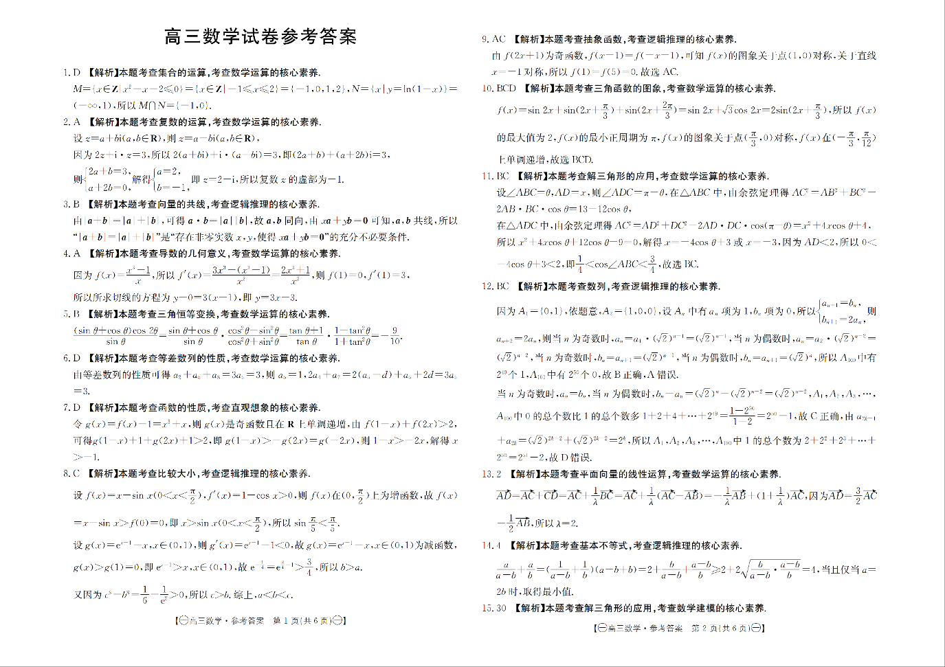 江西省部分高中学校2023-2024学年高三上学期10月联考 数学参考答案