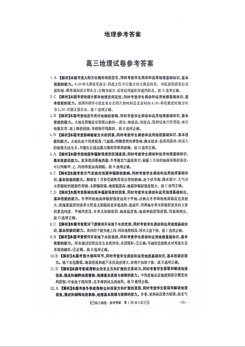 江西省部分高中学校2023-2024学年高三上学期10月联考 地理参考答案