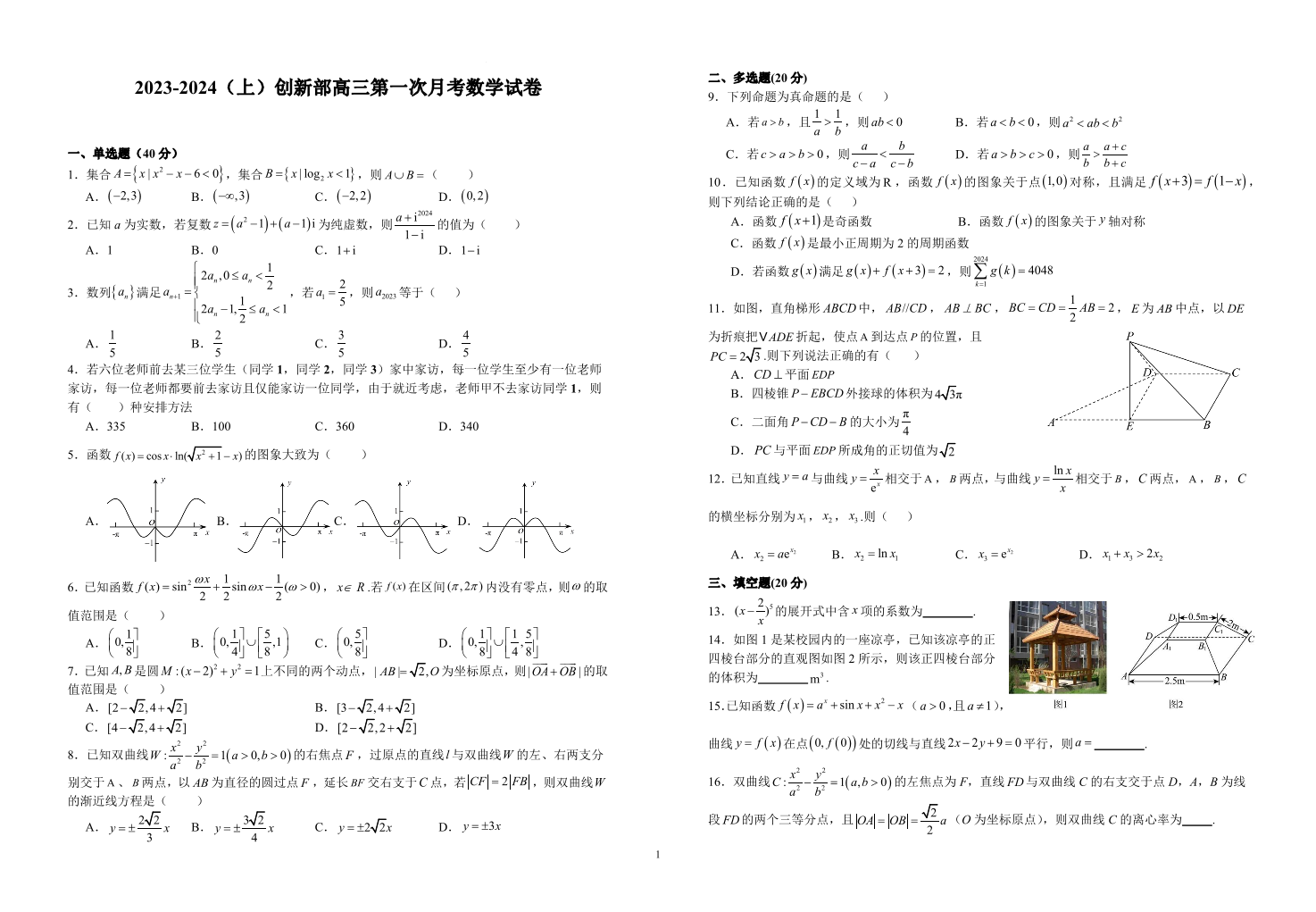 江西省宜春市宜丰中学创新部2024届高三上学期10月月考 数学