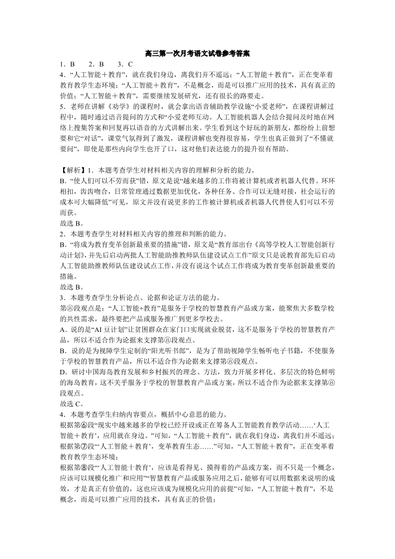 江西省上饶市第一中学2024届高三上学期10月月考 语文答案