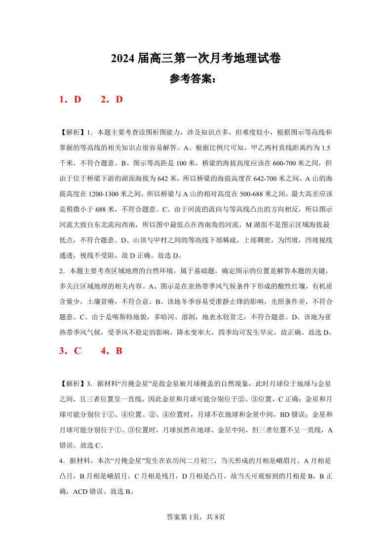 江西省上饶市第一中学2024届高三上学期10月月考 地理答案