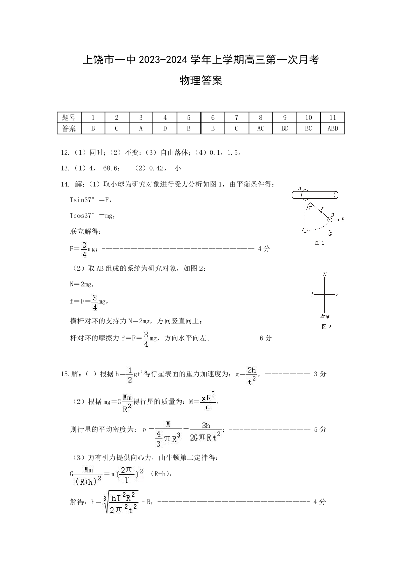 江西省上饶市第一中学2024届高三上学期10月月考 物理答案
