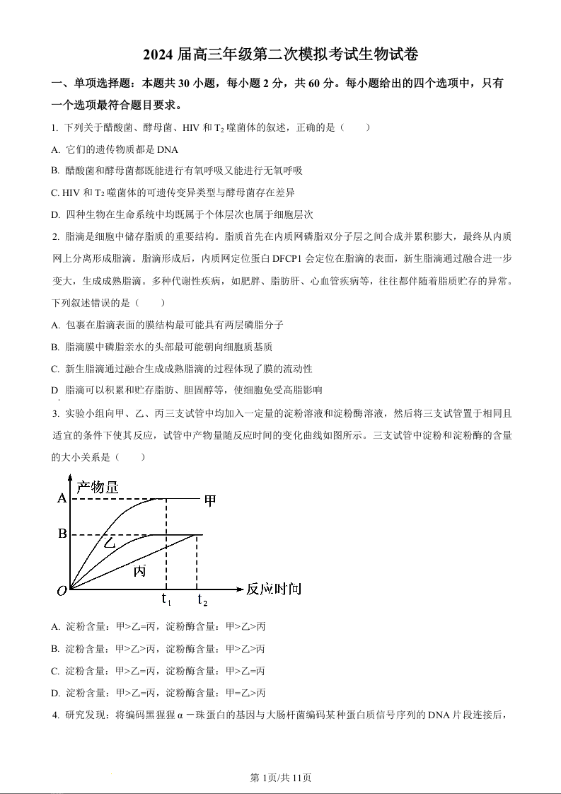 2024届河南省鹤壁市高中高三上学期第二次模拟考试 生物