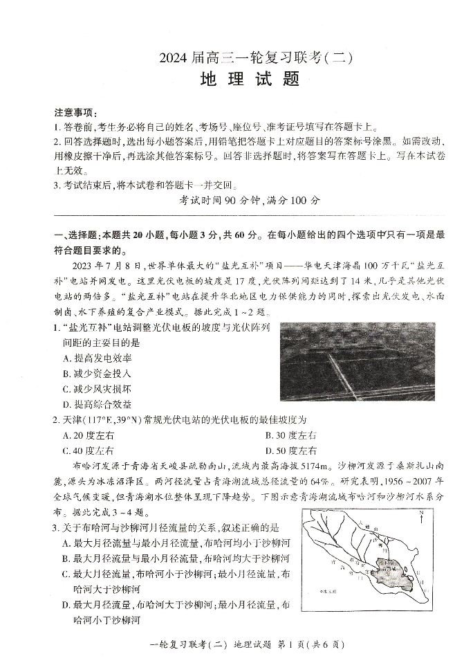 河南省豫北名校2024届高三毕业班一轮复习联考(二)地理