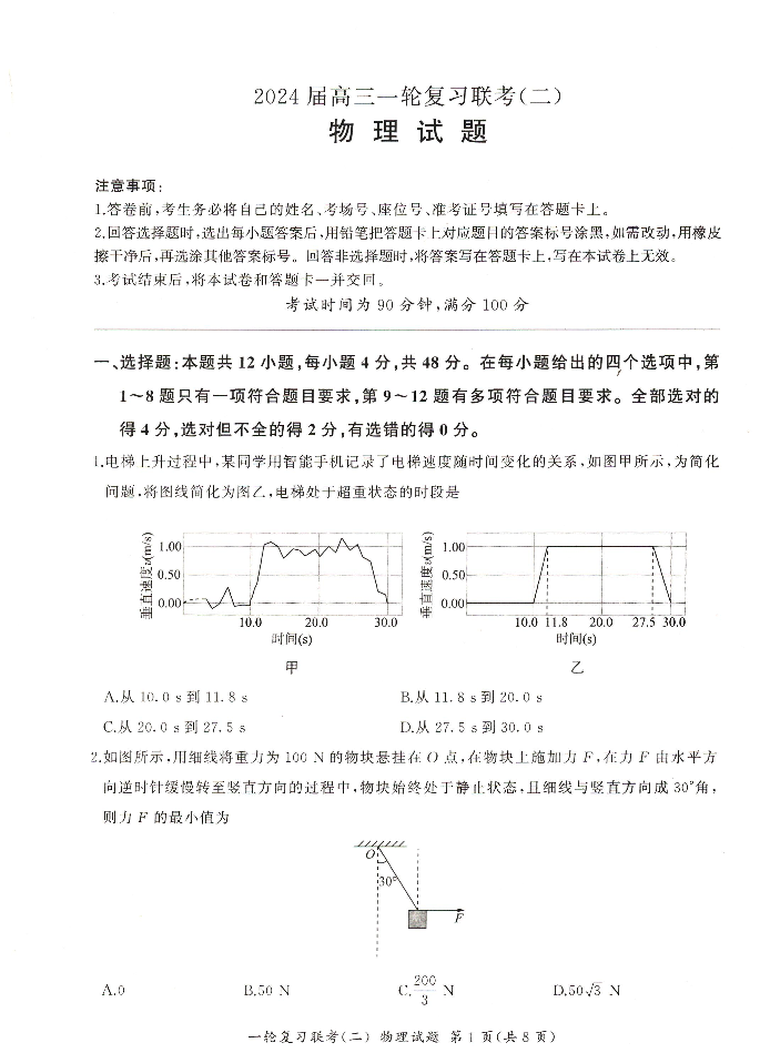河南省豫北名校2024届高三毕业班一轮复习联考(二)物理