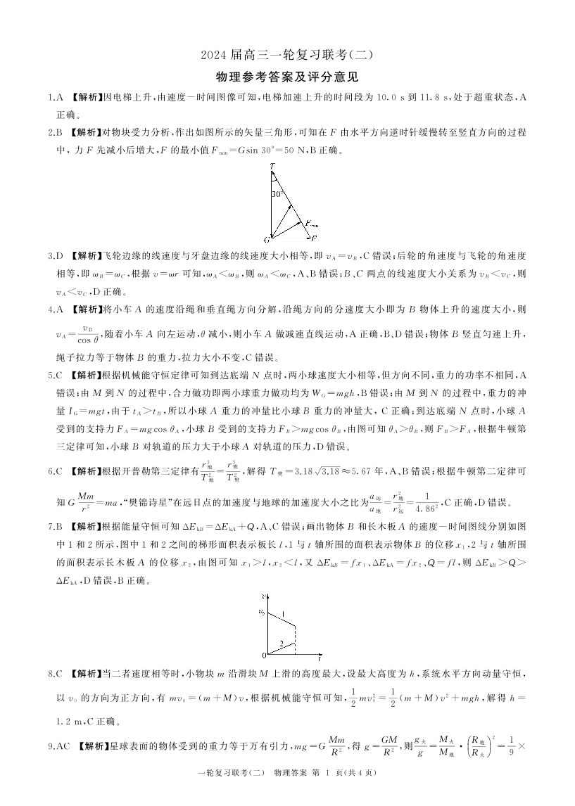 河南省豫北名校2024届高三毕业班一轮复习联考(二)物理答案