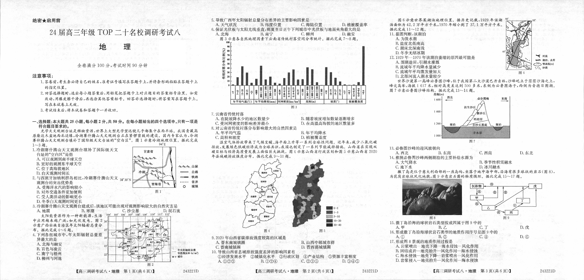 河南省TOP二十名校2023-2024学年高三上学期调研考试(八)地理