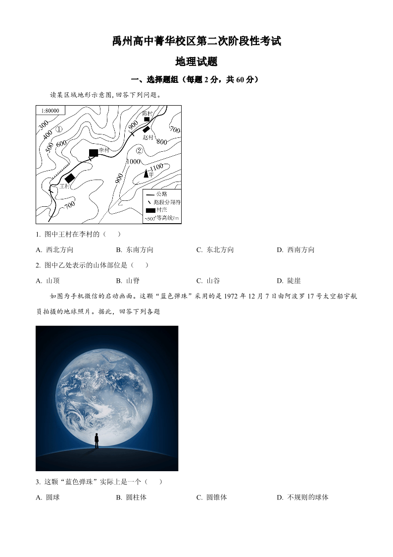 河南省许昌市禹州市高级中学2024届高三上学期11月月考 地理