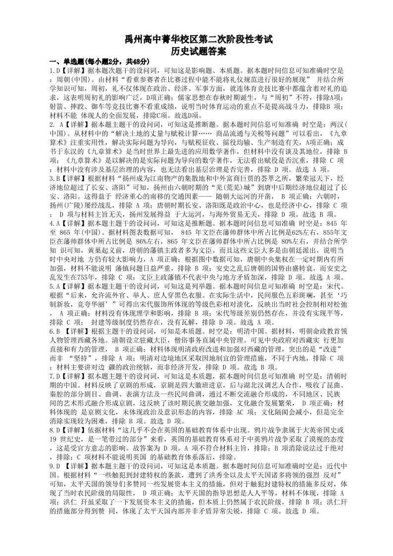 河南省许昌市禹州市高级中学2024届高三上学期11月月考 历史答案