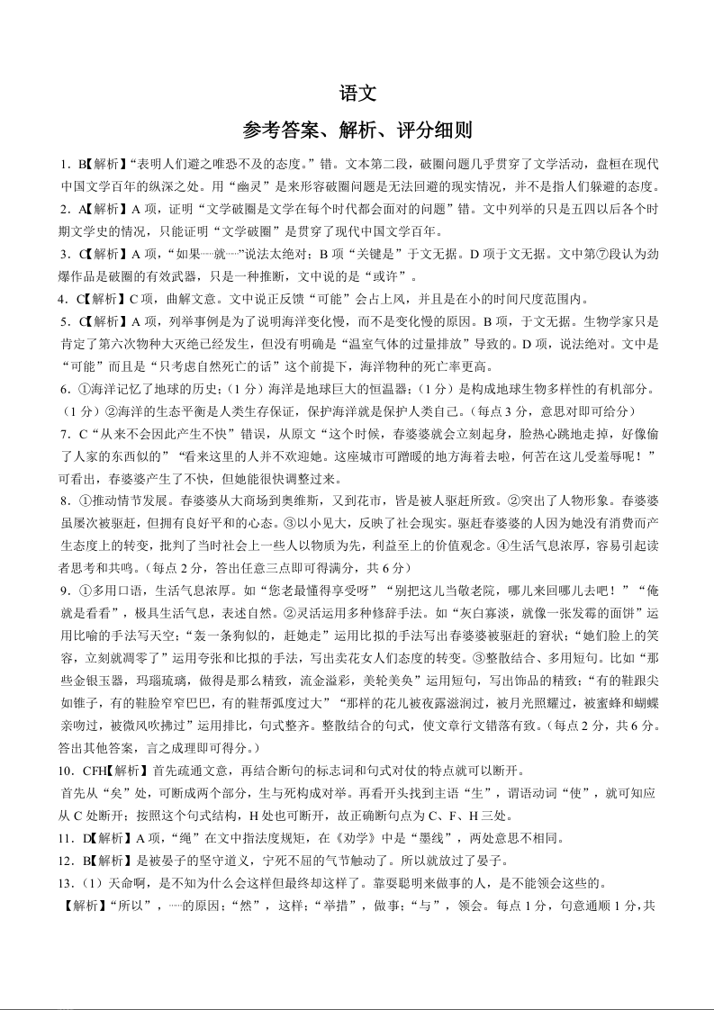 菁师联盟·河南省2023-2024学年高三上学期12月学情调研 语文答案