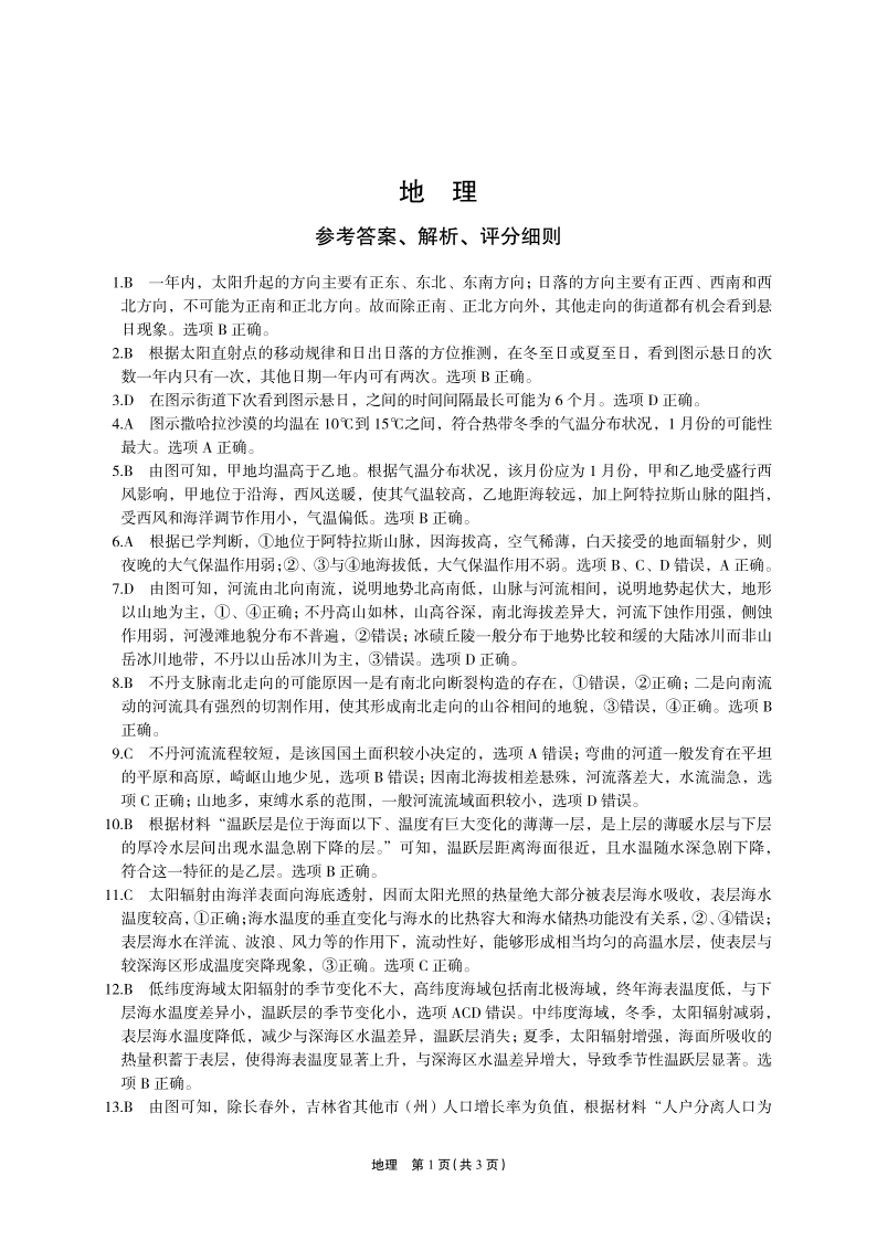 菁师联盟·河南省2023-2024学年高三上学期12月学情调研 地理答案