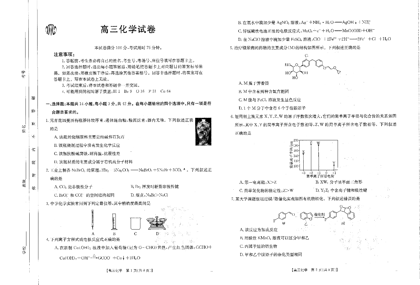 河南省金太阳2024-2025学年高三年级上学期开学联考+化学