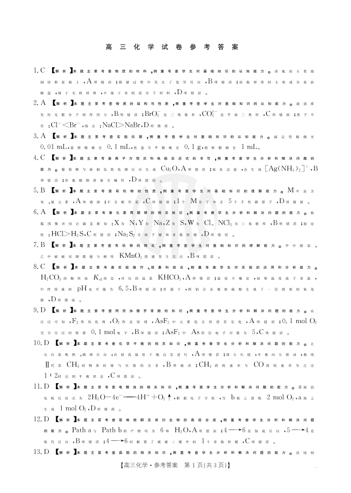 河南省金太阳2024-2025学年高三年级上学期开学联考+化学答案