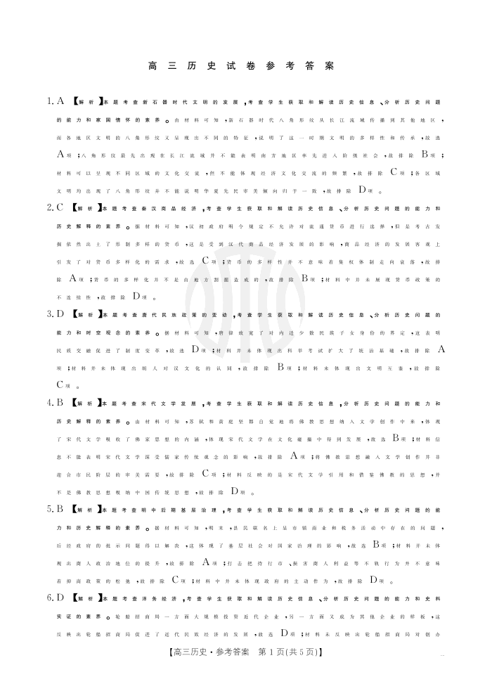 河南省金太阳2024-2025学年高三年级上学期开学联考+历史答案