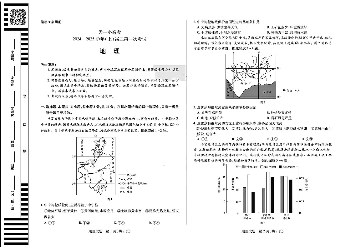 天一大联考2024-2025学年(上)高三第一次考试+地理