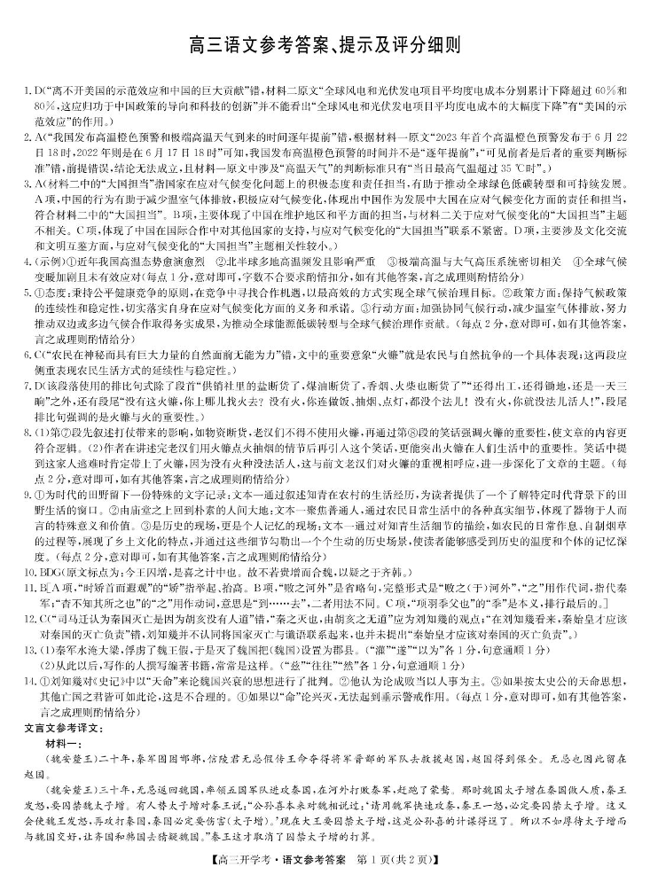 河南省开封五县考2024-2025学年高三上学期开学联考+语文答案