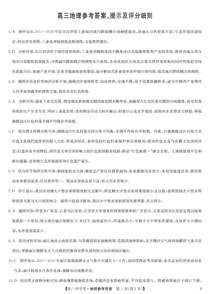 河南省开封五县考2024-2025学年高三上学期开学联考+地理答案