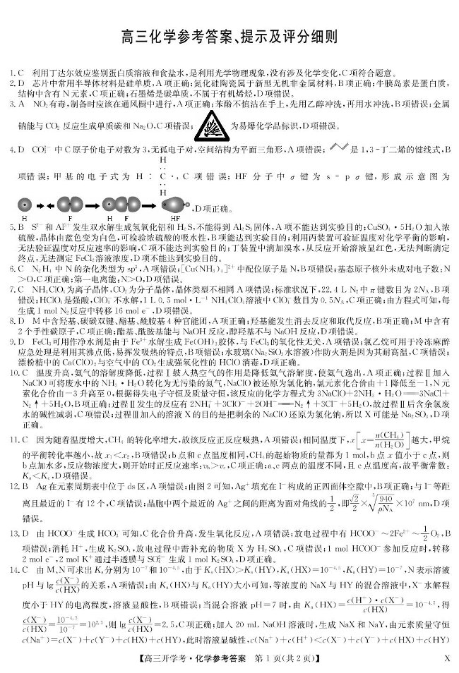 河南省开封五县考2024-2025学年高三上学期开学联考+化学答案