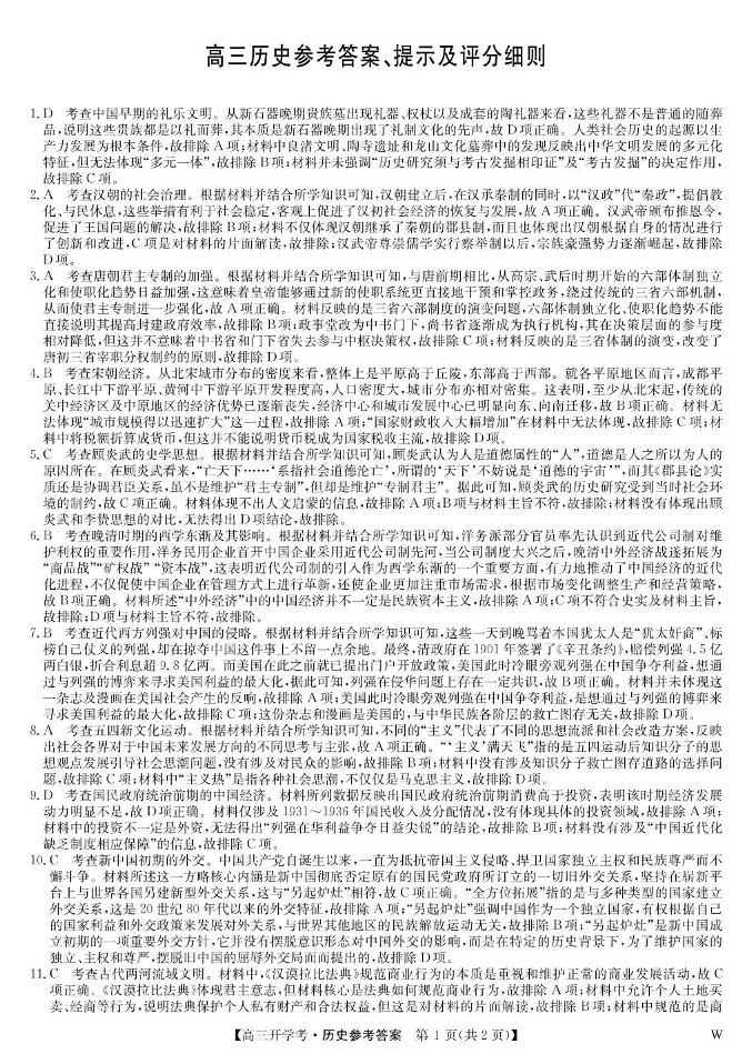 河南省开封五县考2024-2025学年高三上学期开学联考+历史答案