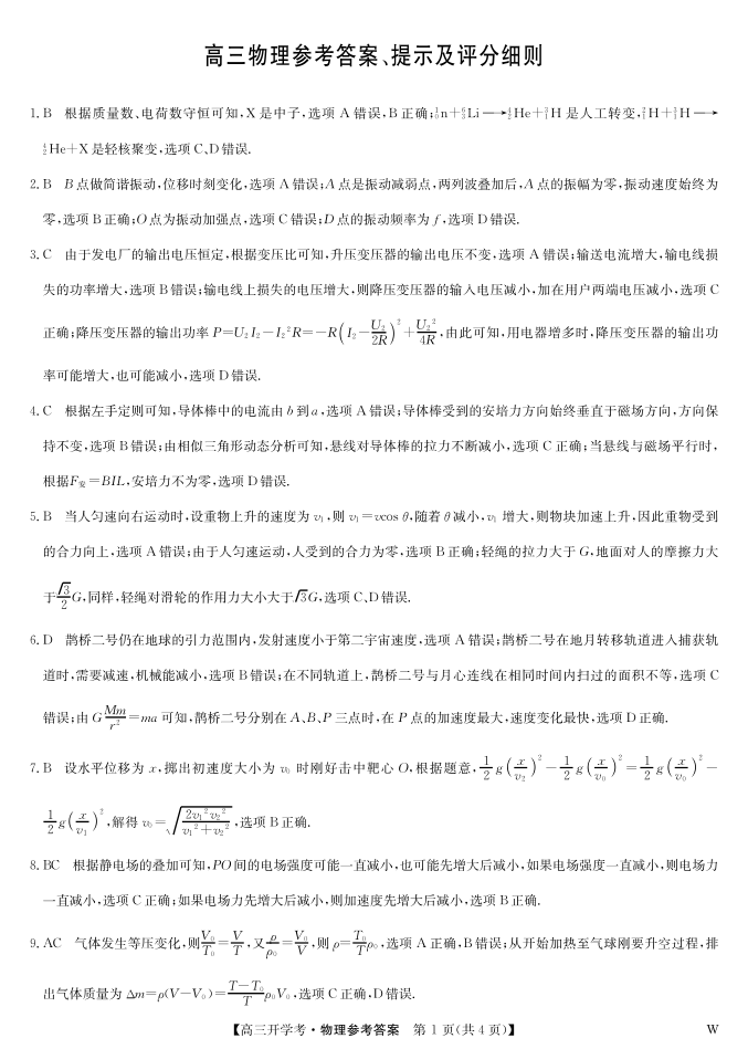 河南省开封五县考2024-2025学年高三上学期开学联考+物理答案