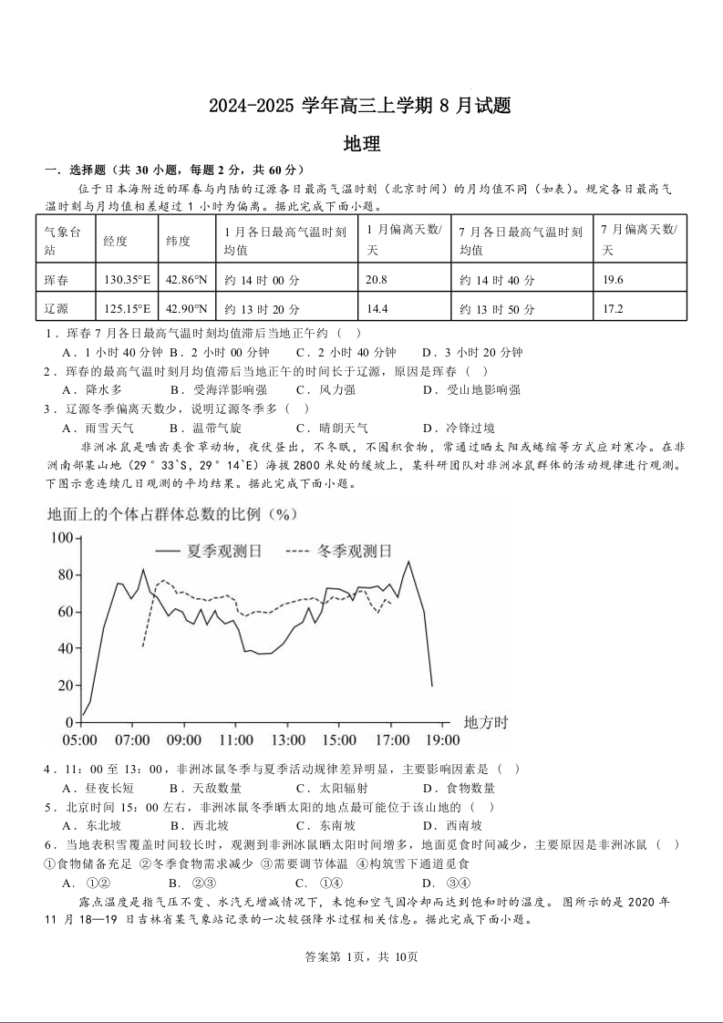 河南省安阳市林州市第一中学2024-2025学年高三上学期8月月考+地理