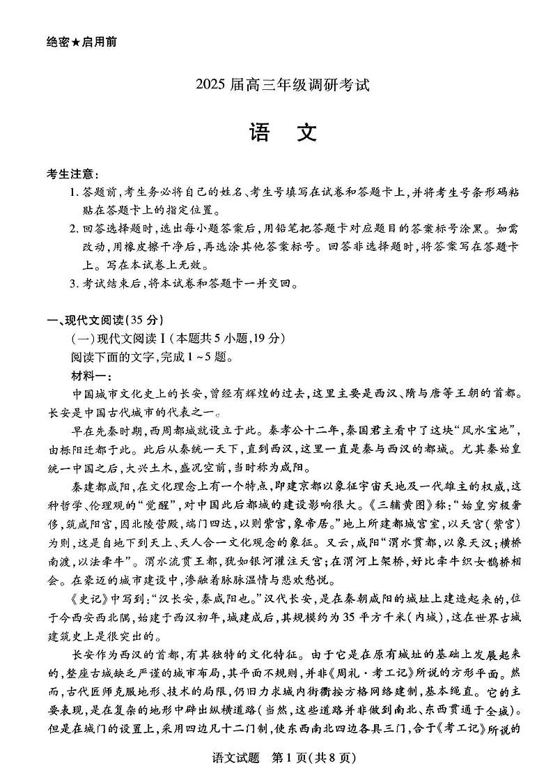河南省天一大联考2025届高三年级9月调研考试+语文