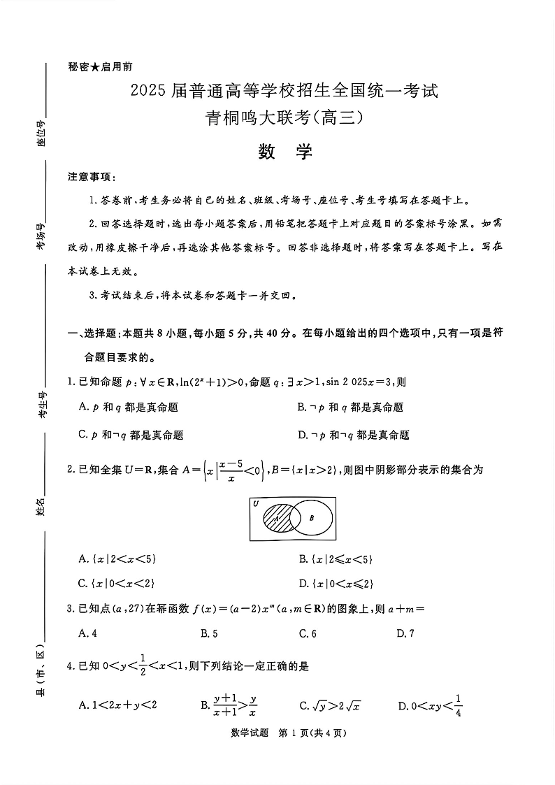 青桐鸣2025届高三10月大联考+数学