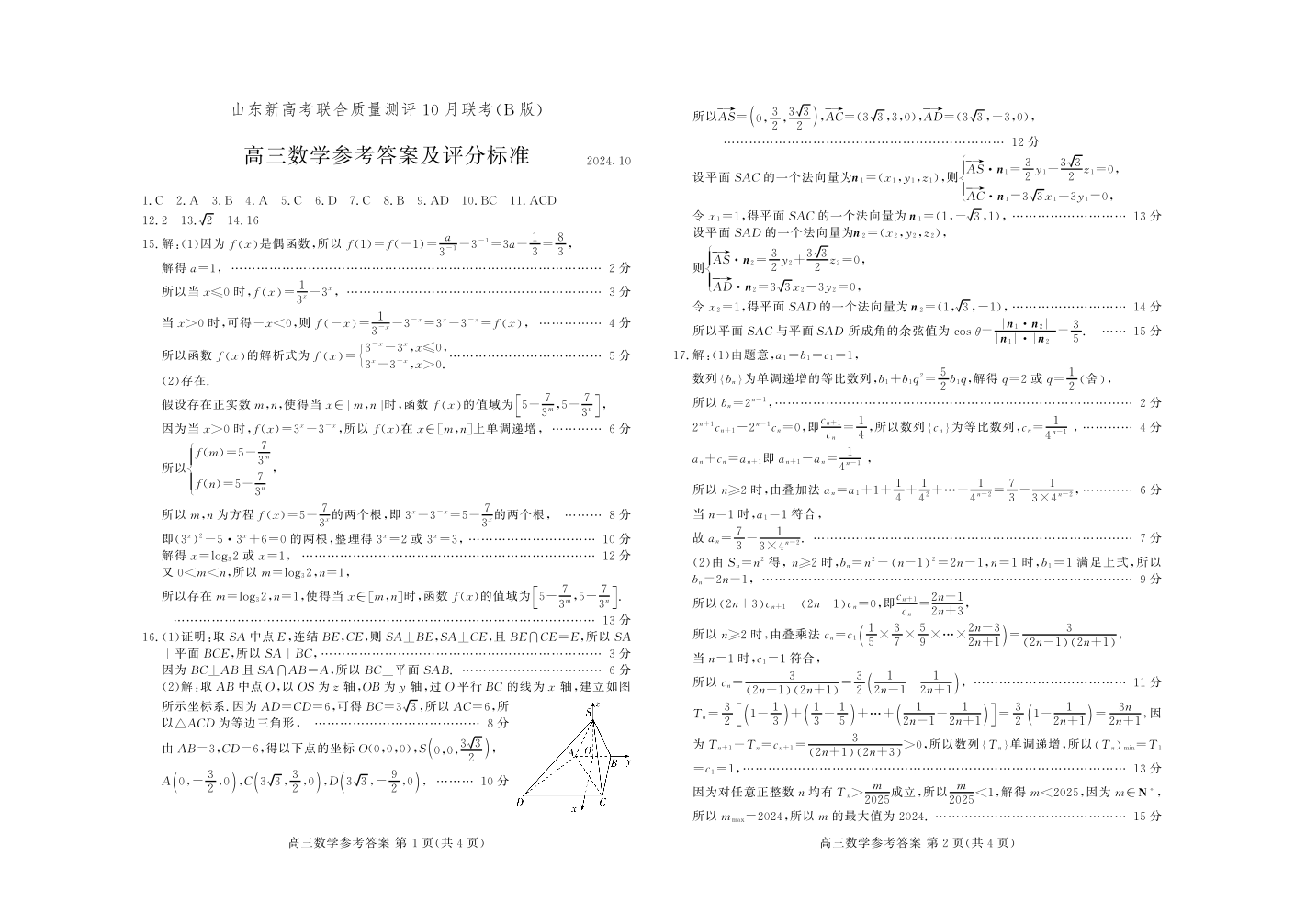 山东新高考联合质量测评高三10月联考试题+数学B答案