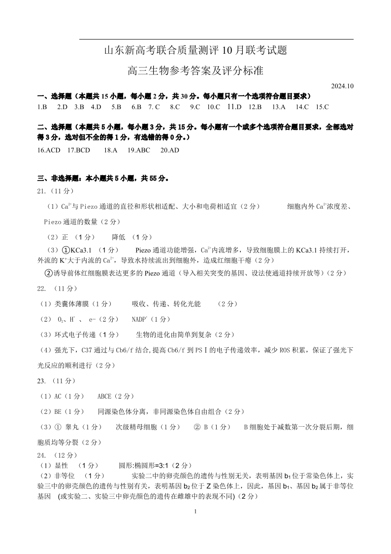山东新高考联合质量测评高三10月联考试题+生物答案