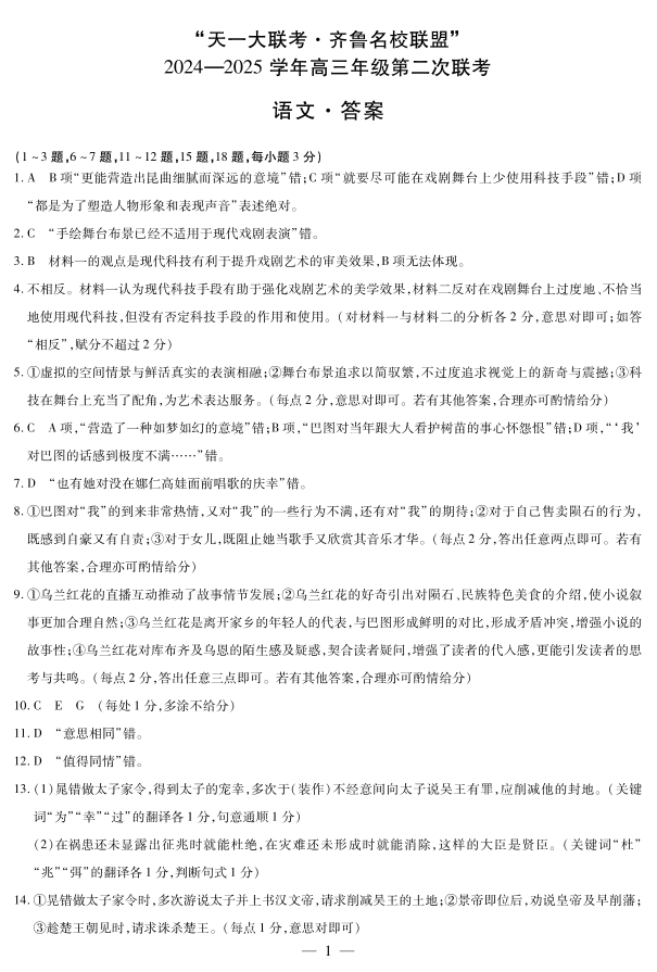 山东省齐鲁名校2024-2025学年高三年级第二次联考+语文答案