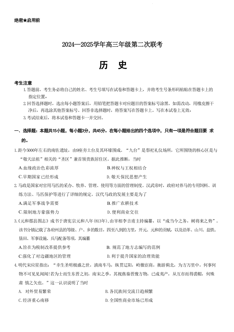 山东省齐鲁名校2024-2025学年高三年级第二次联考+历史
