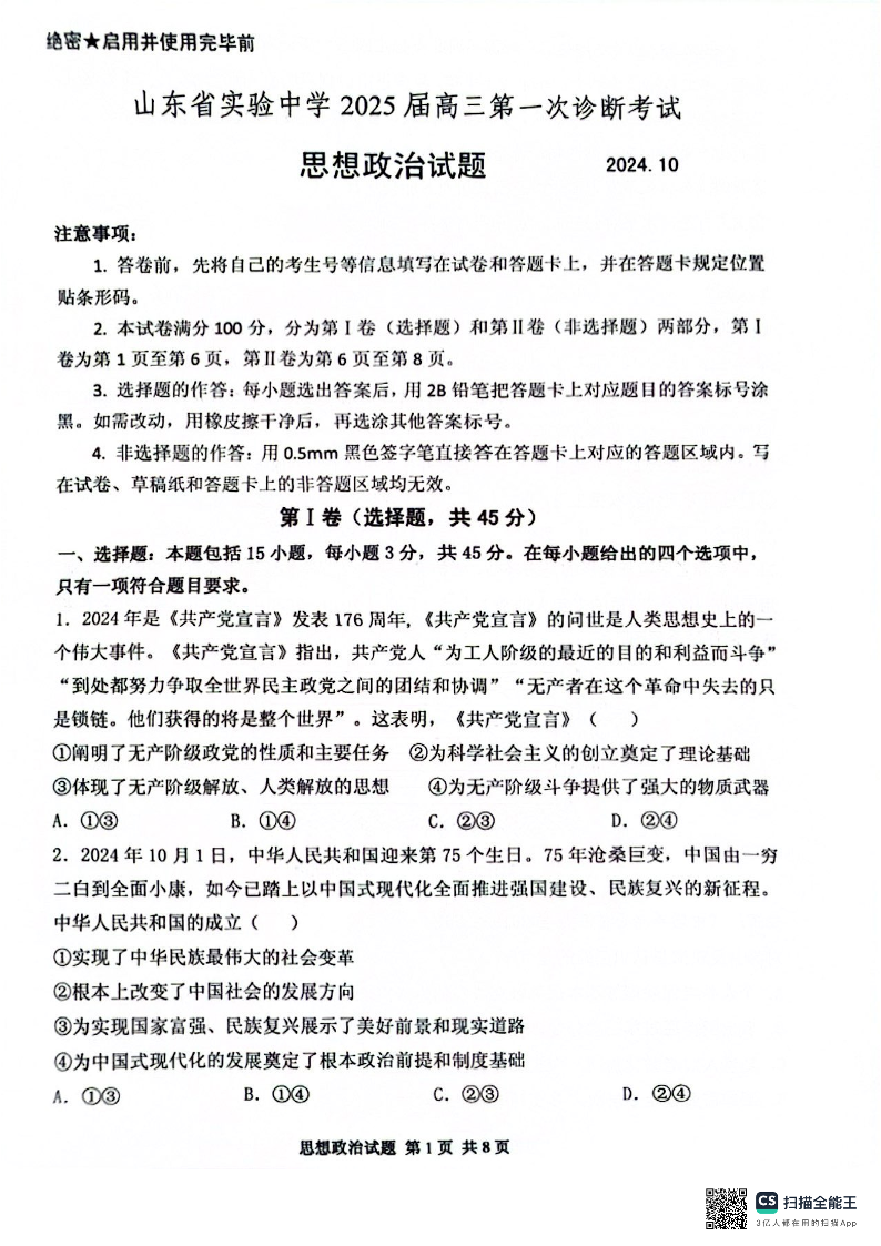 Copyright © 2025 名校考试研题中心资源平台 All rights reserved 鲁ICP备2024123781号-1