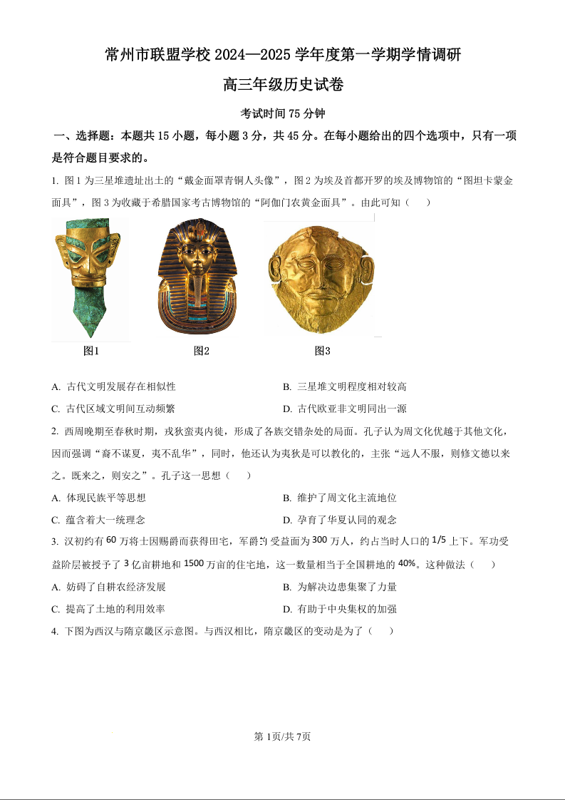 江苏省常州市联盟学校2025届高三上学期10月月考+历史