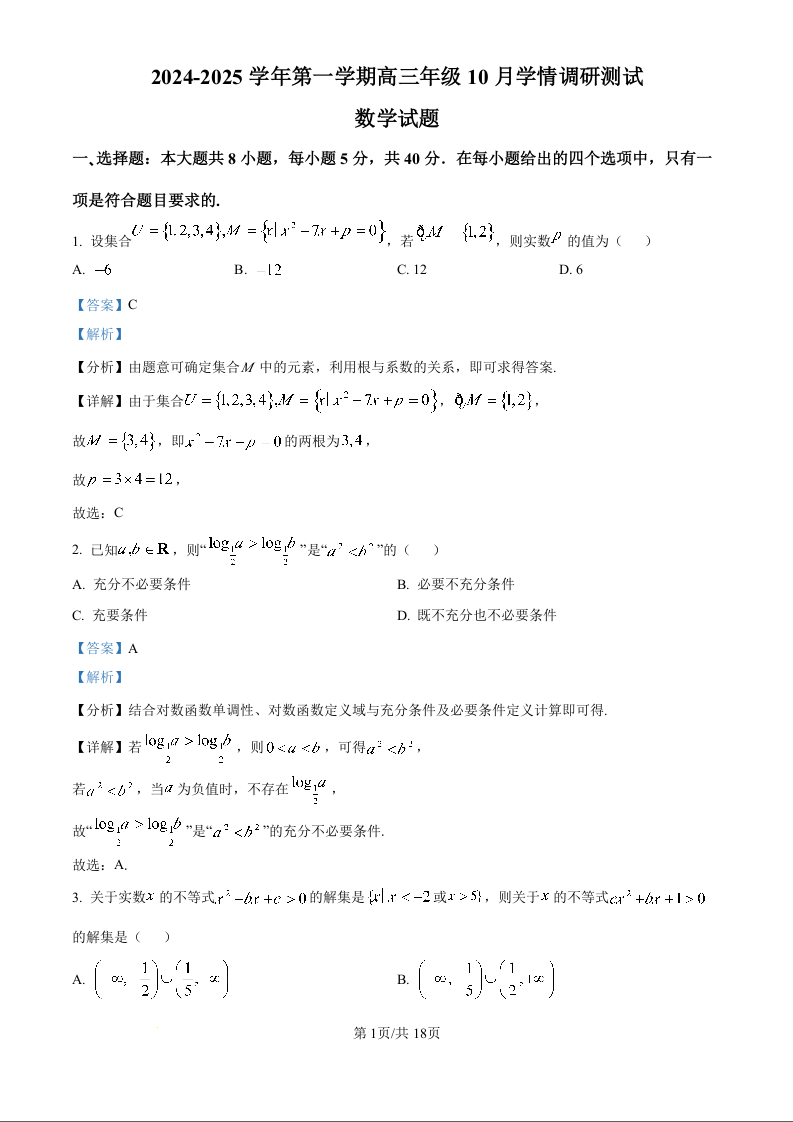 江苏省高邮市2025届高三上学期10月学情调研测试+数学答案