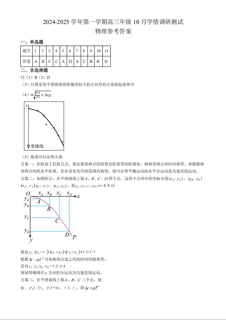 江苏省高邮市2025届高三上学期10月学情调研测试+物理答案