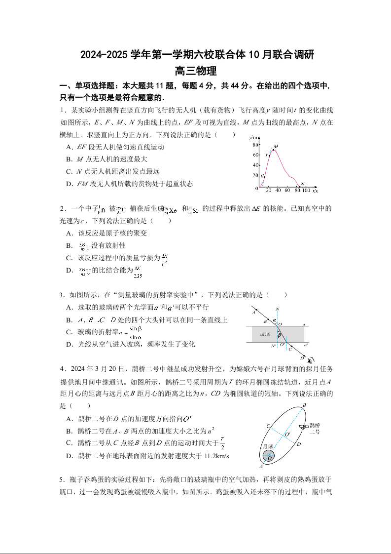 2024-2025学年第一学期六校联合体10月联合调研+物理