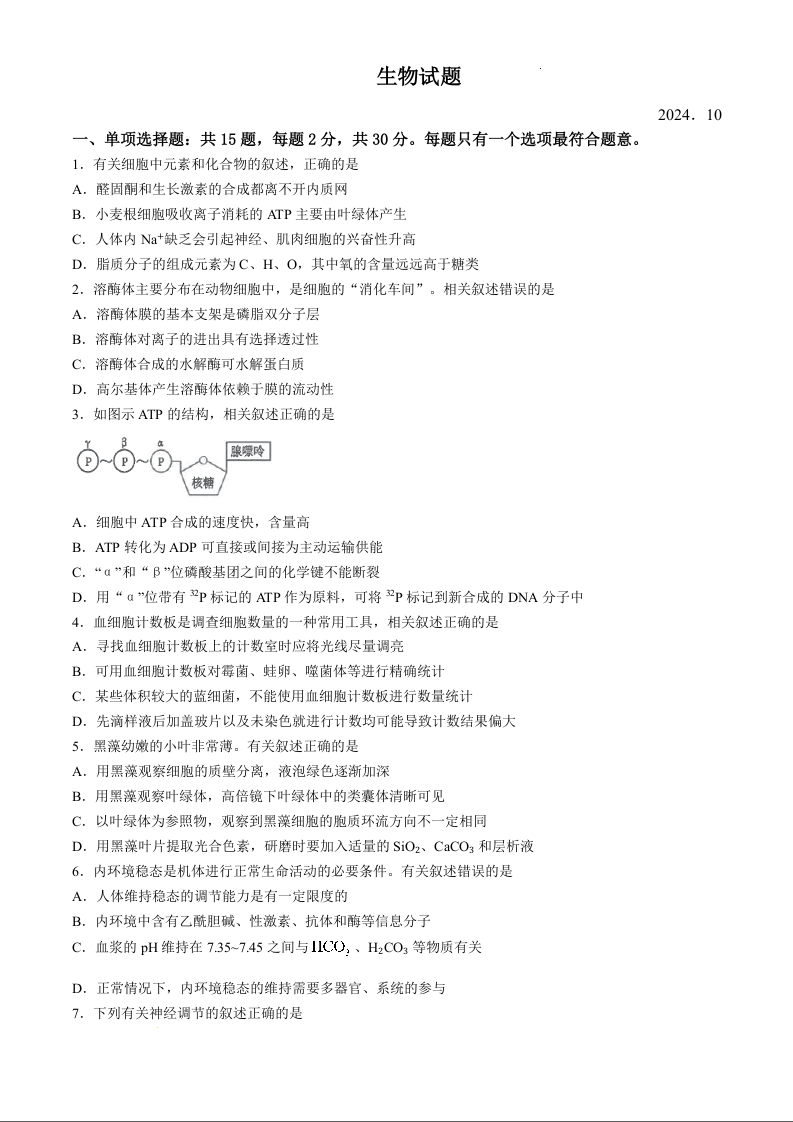 江苏省海安高级中学2025届高三上学期10月月考+生物