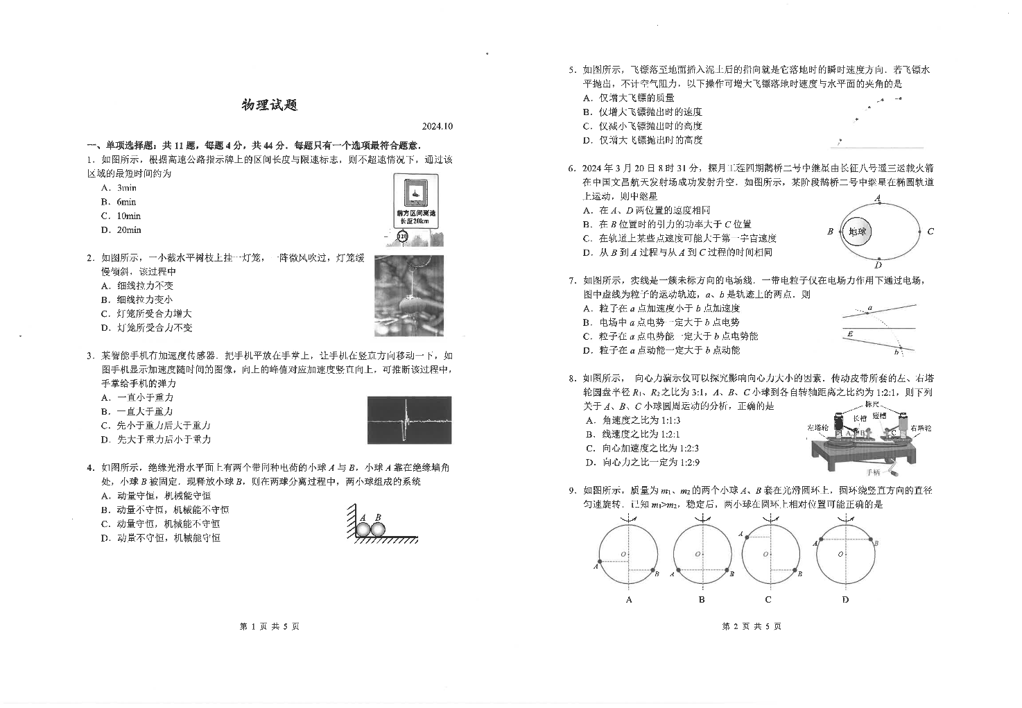 江苏省海安高级中学2025届高三上学期10月月考+物理