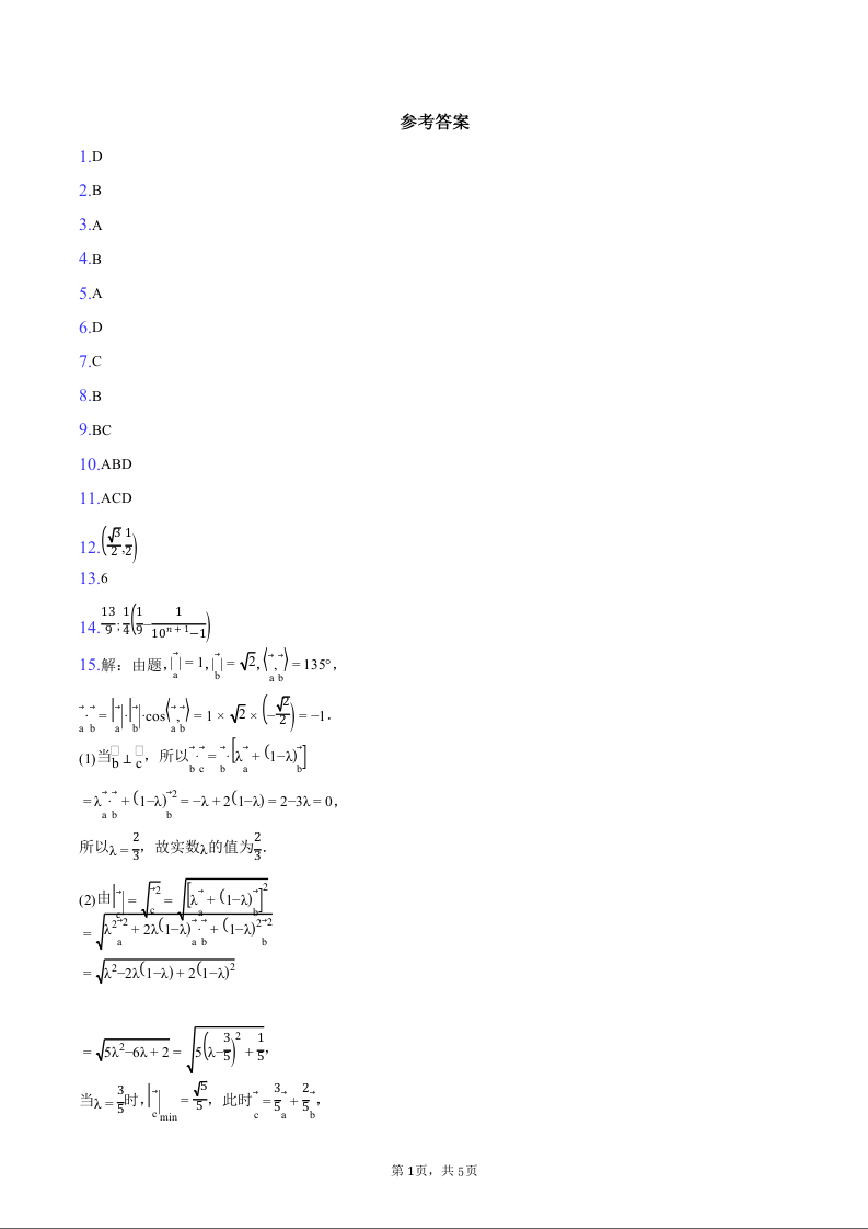 江苏省无锡市2025届高三11月期中教学质量调研测试+数学答案