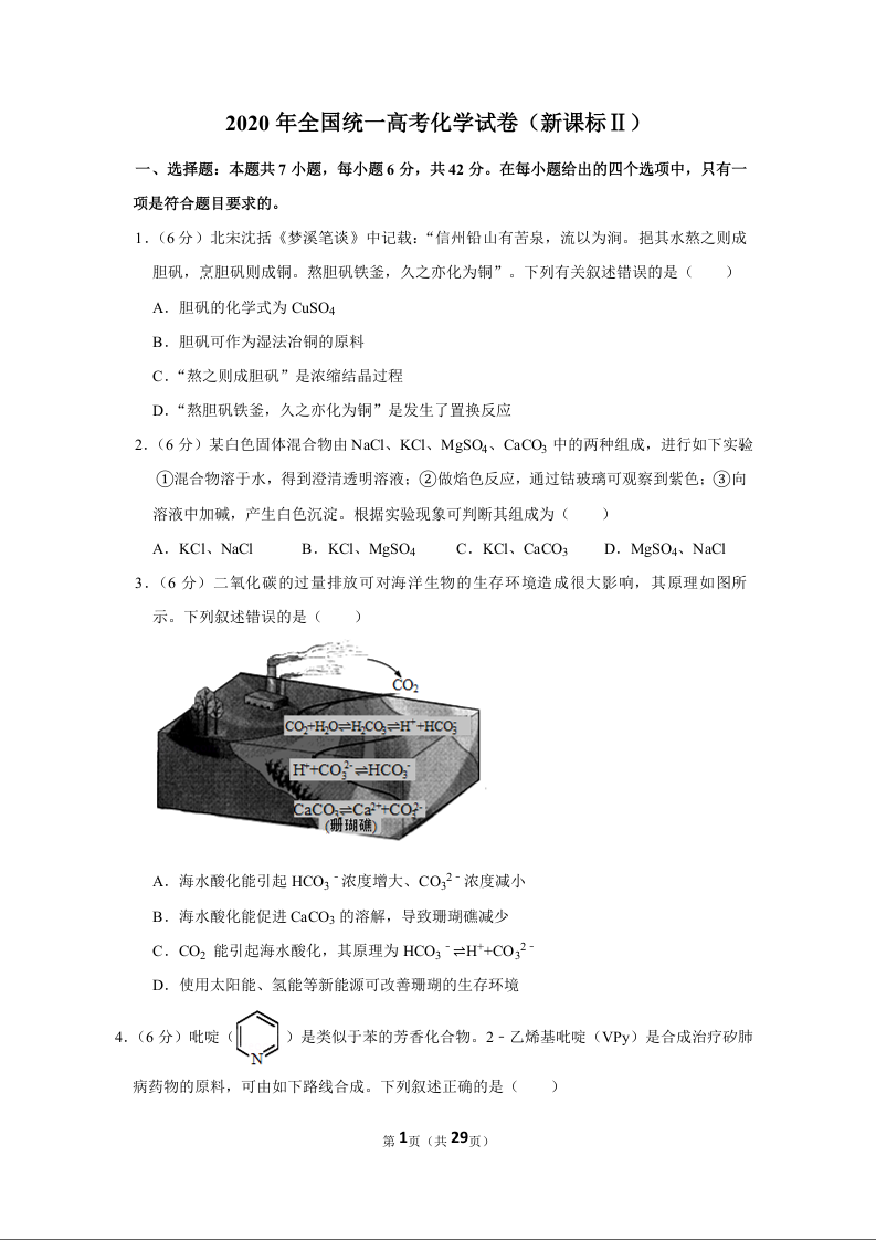 2020年全国统一高考化学试卷(新课标II)(含解析版)