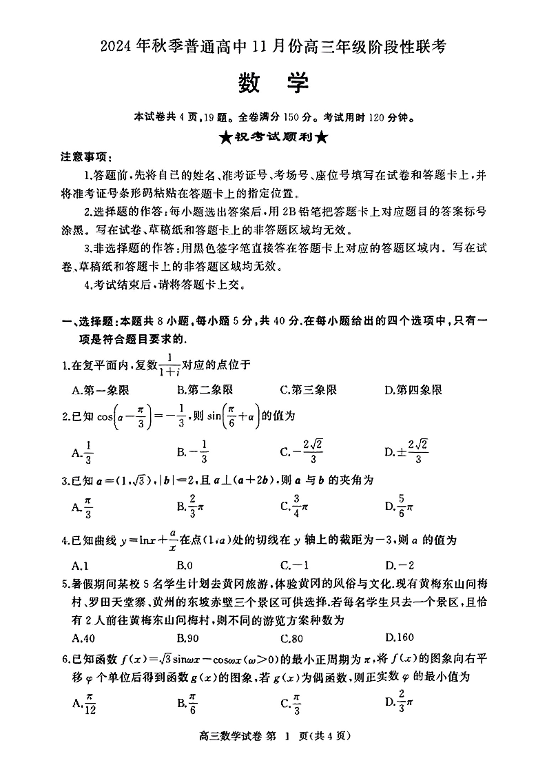 2025届湖北省鄂东协作体秋季普通高中11月份高三阶段性联考数学试题