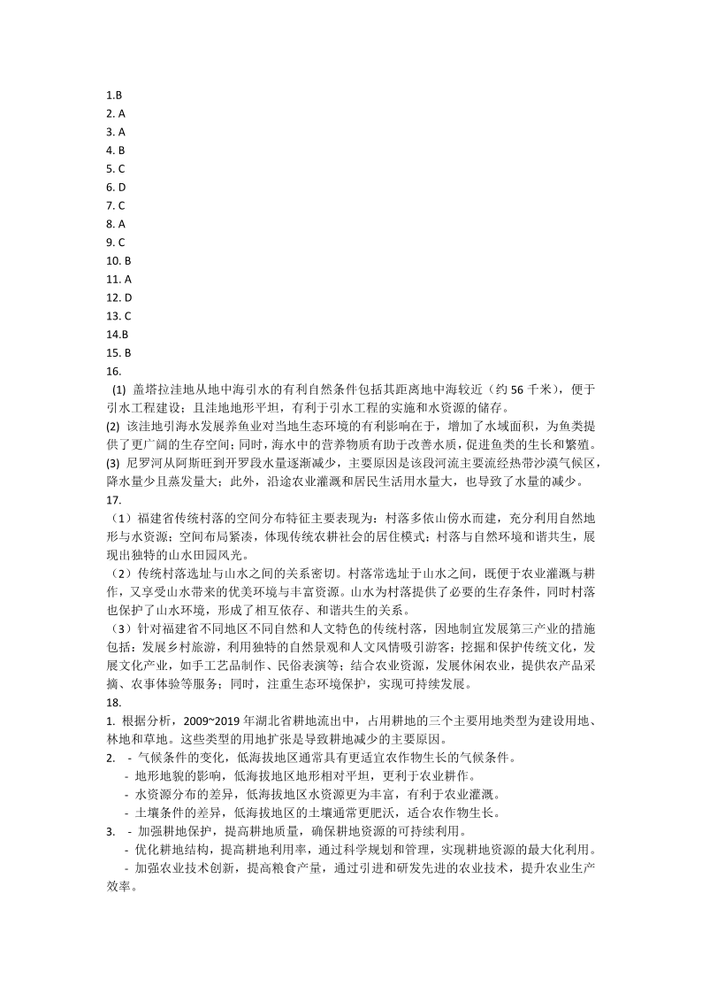 华中师大一附中2024-2025学年度十月月度检测+地理答案
