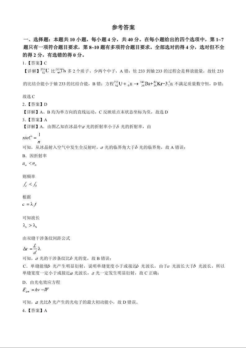 武汉外国语学校2024-2025学年度上学期10月阶段性诊断考试+物理答案